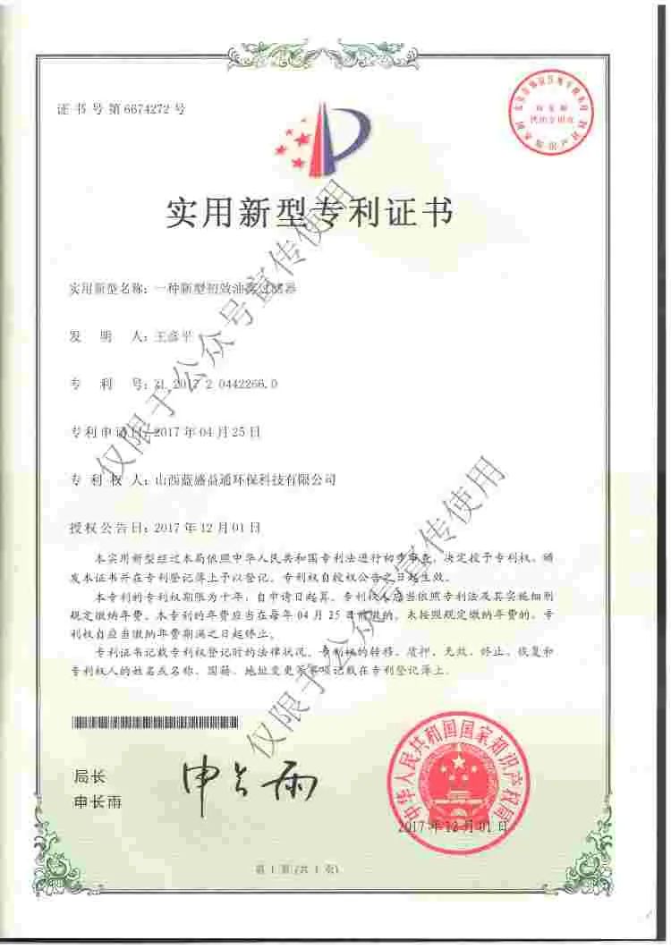實(shí)用新型專利證書
